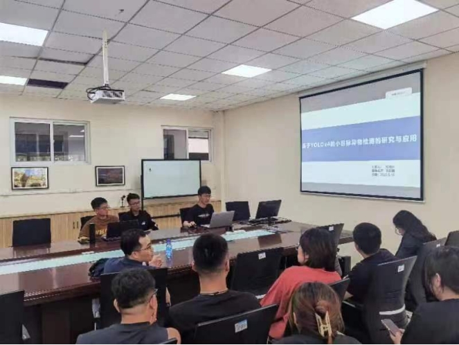 郑刘帅同学的研究汇报题目是“基于YOLOv4的小目标异物检测的研究与应用”,首先介绍了机场跑道异物检测的研究背景及研究现状,由于跑道异物是造成飞行器安全事故的重要因素之一,因此,异物检测应用场景也变得至关重要。接下来,他结合目标检测的评价指标以及YOLOv4的网络架构对异物检测问题提出了相应的解决方案,并对其中的CSPDarknet53结构、SPP结构以及PAN结构进行详细的分析,然后提出了一种改进的YOLOv4结构。最后,展示了机场小目标检测的实验结果。