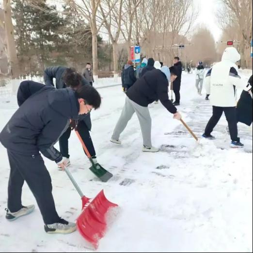 北国风光,干里冰封,万里雪飘。为了保障校内师生的出行安全,强化大学生使命担当,williamhill威廉希尔中文网站院长叶长龙、党委书记孙雪玲、党委副书记潘起波、副院长王传云、21级辅导员王治宇及其他教职工们带领全院学生开展扫雪志愿活动。