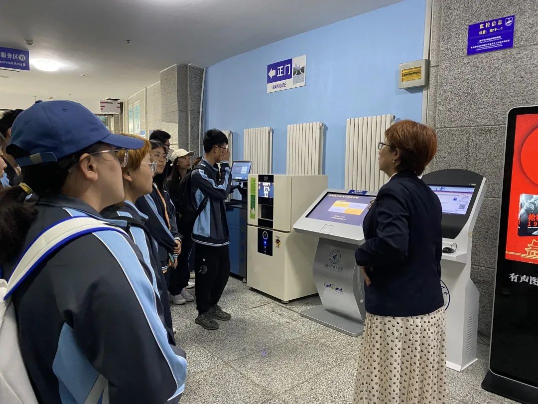 在图书馆老师和学生讲解员的引导下,大家全面了解了我校图书馆的发展历史、馆藏布局、开展服务、入馆须知、借阅规则等,并分组参观了图书借阅室、期刊阅览室等各楼层区域,体验了自助借还平台的使用,并对使用图书馆相关设施中遇到的一些问题,与工作人员进行了互动交流。