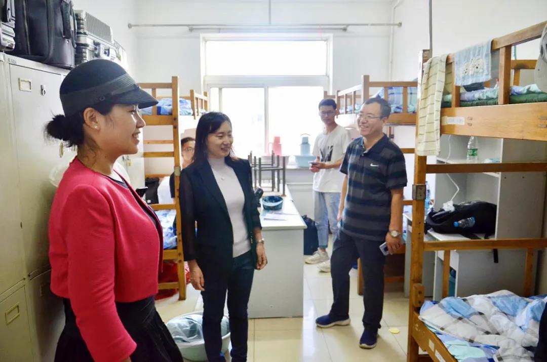12号正式迎新当天,学校领导以及williamhill威廉希尔中文网站全体领导,来到迎新现场深入到学生迎新工作中与同学们亲切交流,并来到了学生宿舍进行走访,表达了对新生同学们的深切关怀。