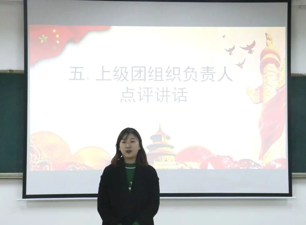 团支部书记对照学校下发相关指示精神文件对2021年度团支部学习及工作情况进行汇报,通过练习题检查同学们的学习情况,结合团支部工作和个人实际作对照检查,并进行了未来工作规划。
